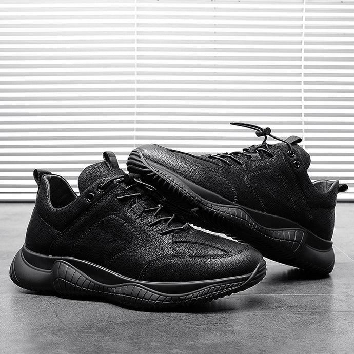 NEW Brand High Quality All Black Men's Leather Casual Shoes Fashion Breathable Sneakers Fashion Flats Big Plus Size 38-44 R5-27