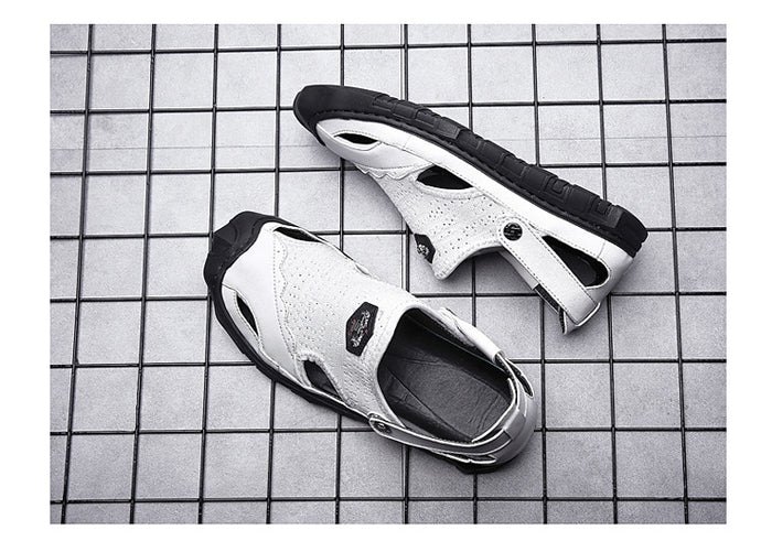 Men's Sandals 2020 New Breathable Leather Mesh Patchwork Male Sandals Soft Sole Outdoor Beach Shoes Non-Slip Water Walking Shoes